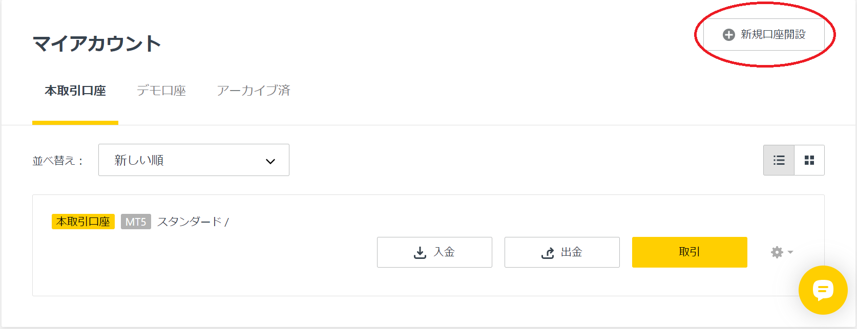 それでは実際にExnessで新規の口座を開く際の解説をしていきます(いわゆる2つ目以降の口座開設)