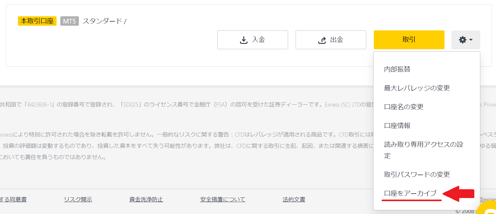 - 口座の削除は手動でアーカイブにすることが可能(取引しないで時間が経過すると勝手にアーカイブになる)