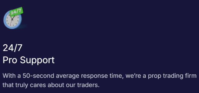 サポート体制についてもFundedNextは安定しており、上記の通り平均50秒でレスポンスが来るとのことです。