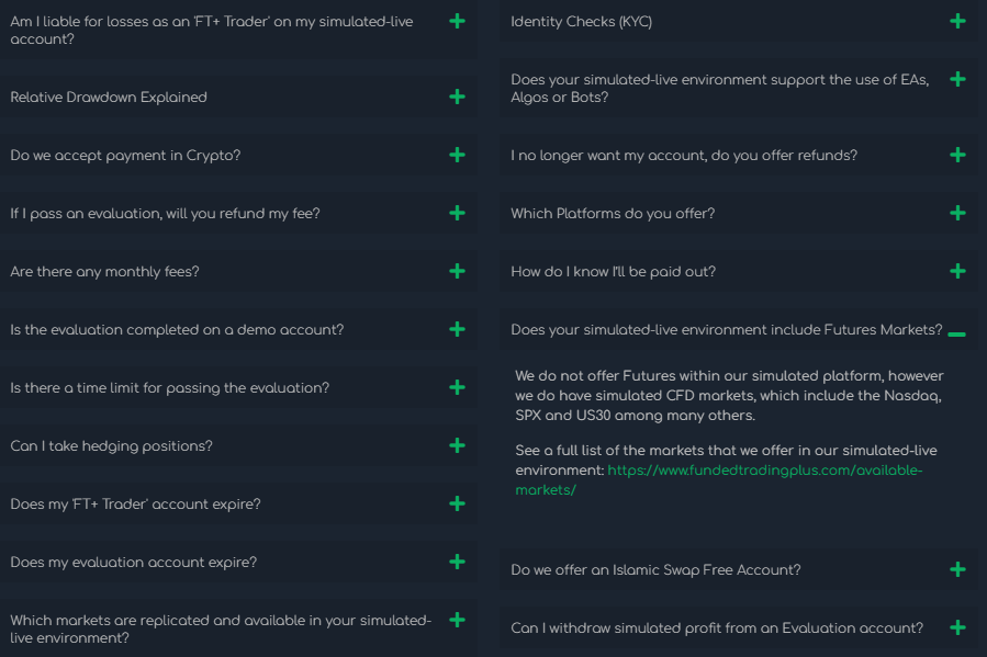 それでは最初にFundedTradingPlusの取引環境を確認する方法を解説します。海外プロップファームの中では珍しく事前に確認可能です。