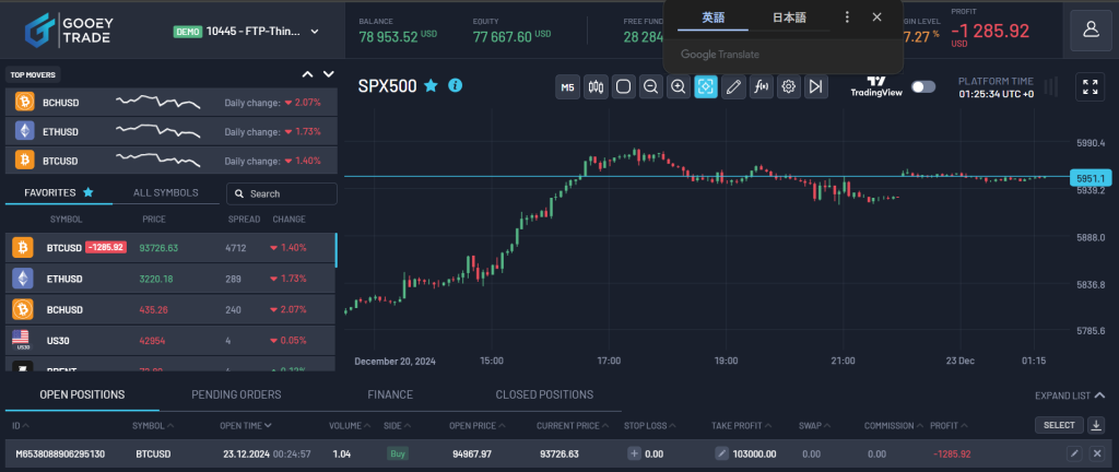 FundedTradingPlusの取引環境を確認する