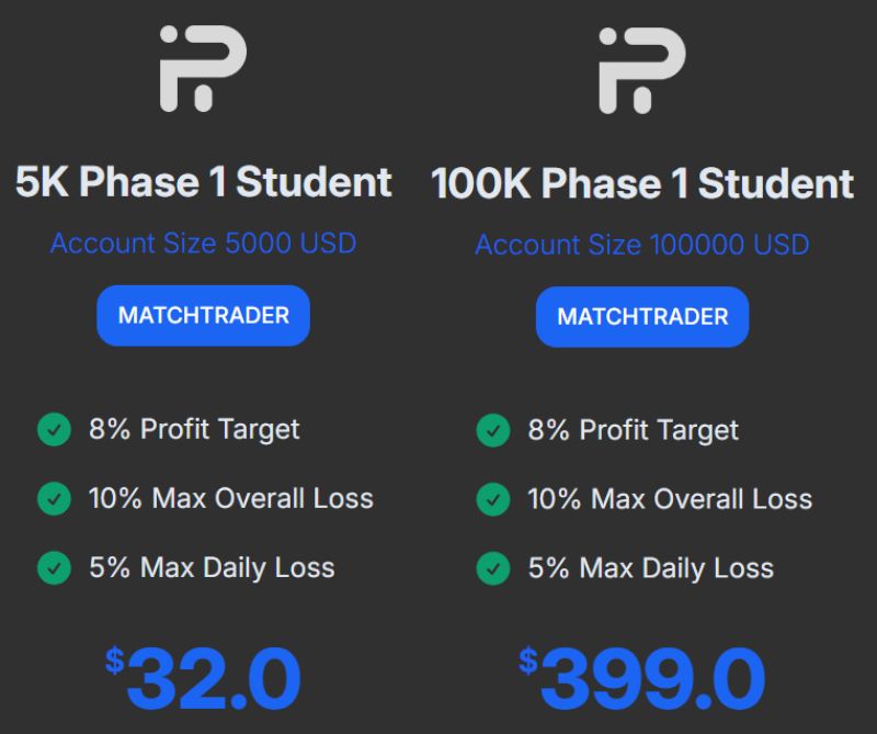 - トレード条件は同じ(Step1は8%・Step2は5%など)