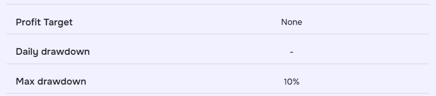 まず速攻プロ口座のInstant Funding口座ですが、こちらは最大損失10%の制限のみになります。この最大損失は初期原資の10%になります。