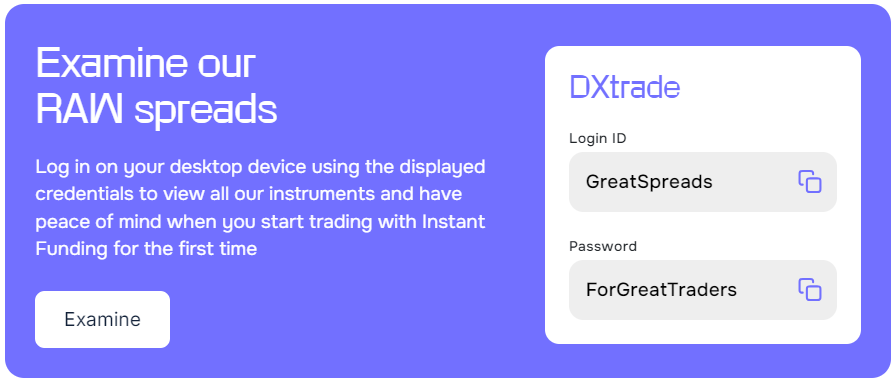先述した画像のように、Instant Fundingでは公式サイトからスプレッドを確認できるデモ口座を確認することができます。