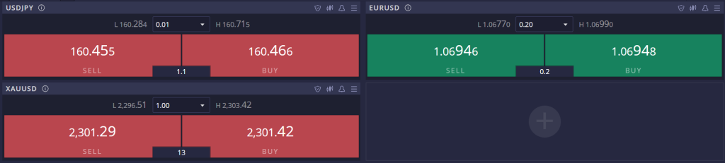 筆者がInstant Fundingでトレードをする時は、基本的にユロドルがメインです。夜などボラティリティが高い時は低ロットのゴールドでトレードしています。