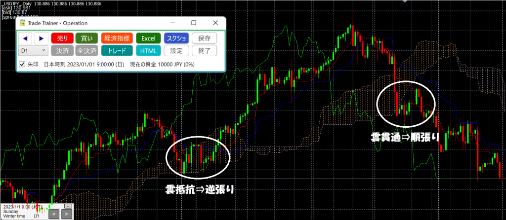 と言うことを踏まえたうえで私はこの雲のみに注視してトレードを行うことにしました。
