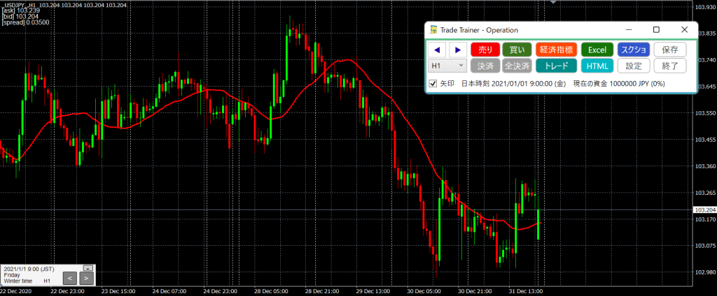 上記のメリットのように、TradeTrainerだけの機能(ヒストリカルデータ標準搭載・重要指標確認システム)もあるので本当に使いやすいです。