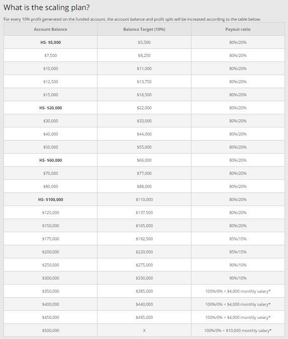 The5ersのスケーリング機能は、原資の増大と利益分配率の増大です。このスケーリング幅がかなり強力なため、プロを継続できるほど恩恵が高くなります。