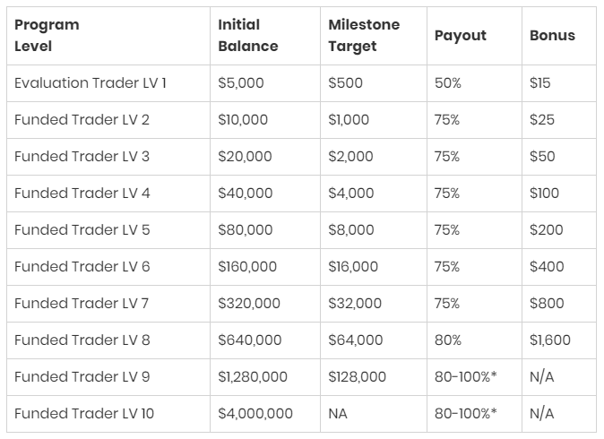 - スケーリングの機能が業界TOPクラス(最高400万$まで提供される・利益分配率100%)