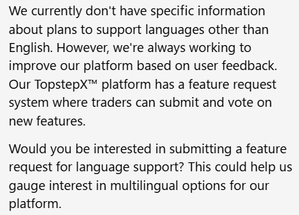 - Topstepって日本語対応をする予定はあるのか?