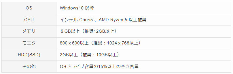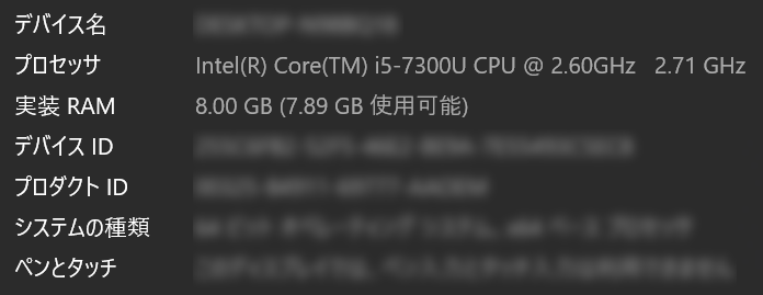※参考までに筆者のパソコンのスペックはこちら。スペックの中では下限ですが問題なく動作しているため、これくらいのパソコンであれば問題なく動きます。