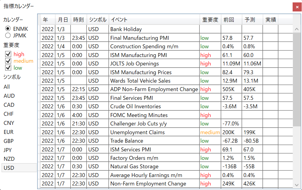 4. 検証ツールでは珍しい「経済指標」の確認が簡単にできる