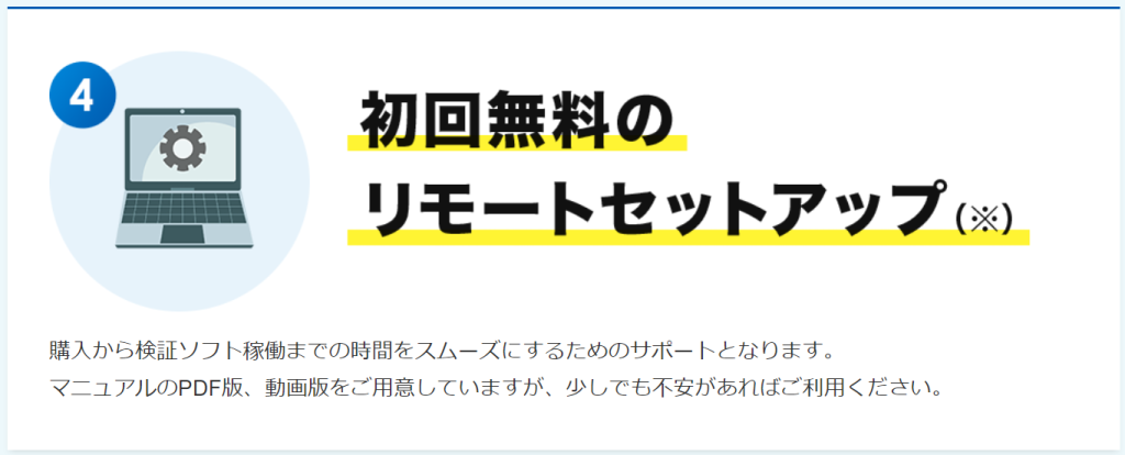 ちなみに操作が難しいと感じた場合、初回であれば無料で設定のサポートをしてくれます。どうしても導入ができないと感じた場合はサポートに連絡すれば安心です。