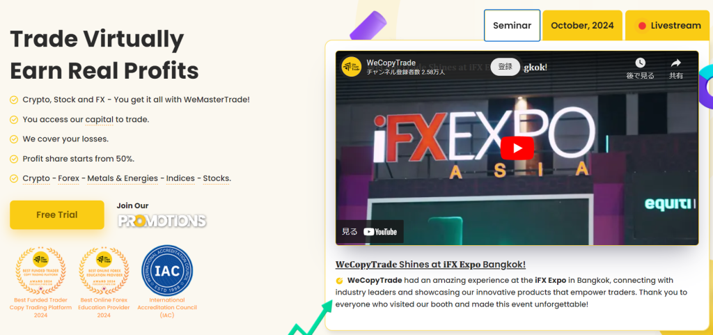 WeMasterTradeは、2022年から運営をしているプロップファームです。母体はWeCopyTradeと言うコピートレード専門業者になります。コピトレ専門は珍しい。