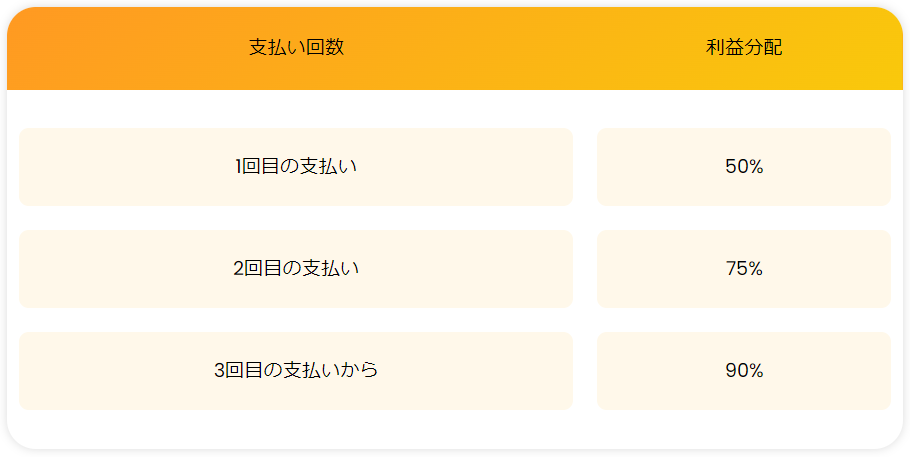 2. 利益分配率最大90%(50%→75%と2回の出金が必要)