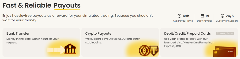 そのため出金頻度に悩まされることがありません。利益目標さえ達成することが出来れば出金は可能です。Wiseや仮想通貨が使えるのもいい所。