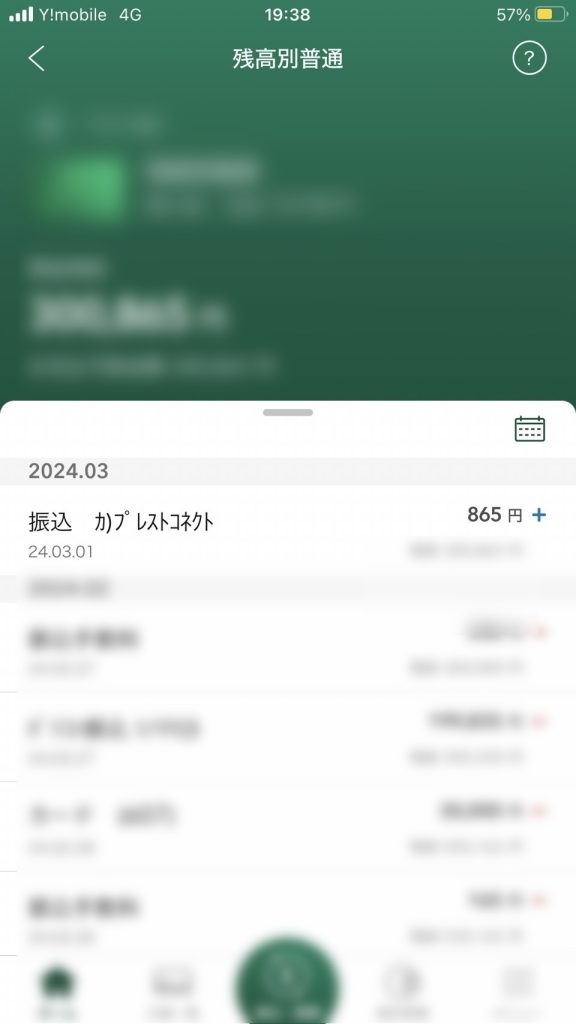 - 2024/3/1 10:00ごろ 出金先の銀行口座に着金