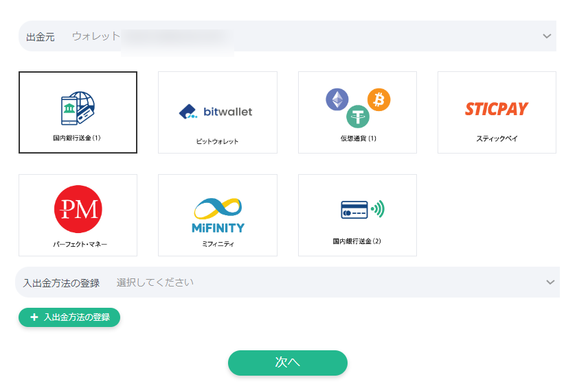 登録した情報先にワンクリックで出金可能